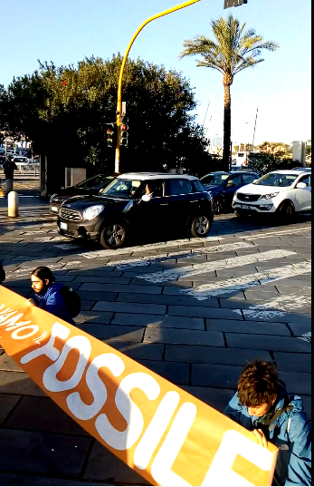 I manifestanti hanno bloccato la libera circolazione delle auto, srotolando striscioni con la scritta FONDO RIPARAZIONE. Per tutta la durata della protesta si è svolto un confronto concitato tra i manifestanti e gli automobilisti. Le forze dell'ordine sono giunte sul luogo alle 8:17, e hanno sgomberato la carreggiata alle 8:50. Una delle persone presenti al blocco come osservatore legale testimonia di essere stata presa a calci sulla schiena da un operatore della Digos, anche se lo zaino ha attutito il colpo non facendole del male. I cittadini, che hanno fatto resistenza passiva, sono infine stati portati in questura.