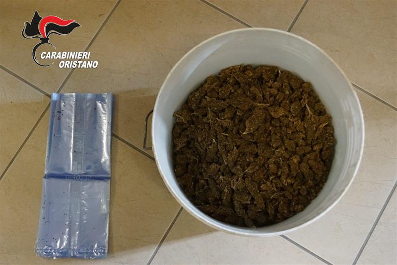La perquisizione presso l'abitazione dei due ha portato al ritrovamento di 800 grammi di infiorescenze di marijuana, occultate in un secchio di plastica, e di un bilancino di precisione. Gli arrestati sono stati posti agli arresti domiciliari in attesa del rito direttissimo presso il Tribunale di Oristano.