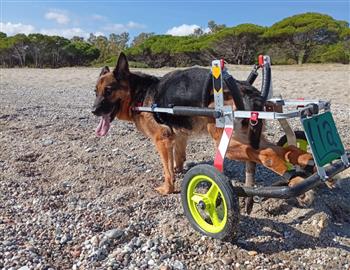 Investita, paralizzata alle zampe posteriori e a un passo dalla soppressione: la storia di questo pastore tedesco femmina, cagnolona arrivata dal Campidano e giunta in Ogliastra nelle mani di una volontaria, è una di quelle che fanno piangere ma anche sperare. Che spezzano il cuore ma che lo ricuciono perché la forza degli animali è straordinaria.