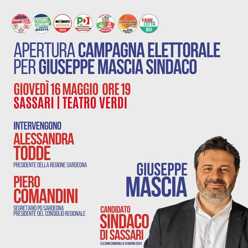 l’evento di apertura della campagna elettorale di Giuseppe Mascia, candidato sindaco di Sassari per il campo largo.