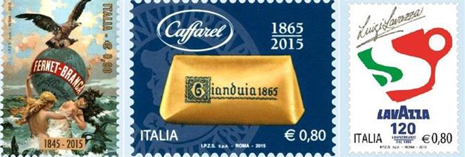 Il Ministero dello Sviluppo Economico emetterà, il giorno 24 aprile 2015, tre francobolli ordinari appartenenti alla serie tematica “le Eccellenze del sistema produttivo ed economico” dedicati a: Gianduiotto Caffarel, nel 150° anniversario della produzione, Fratelli Branca, nel 170° anniversario della fondazione, Luigi Lavazza, nel 120° anniversario della fondazione, nel valore di € 0,80 per ciascun francobollo.