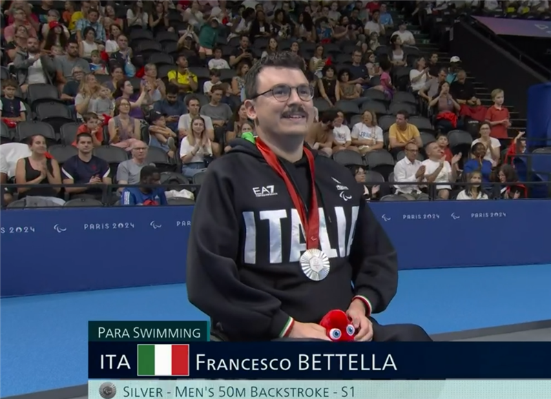 Sport Bettella fa il bis, argento per lui nei 50m dorso S1 01 set 2024 09:30 - Carla Marongiu Corsia 5 per Francesco Bettella che parte in quarta posizione per poi superare in progressione gli avversari fino ad arrivare al tocco in seconda posizione conquistando un argento pregiatissimo con un tempo di 1:13:90.